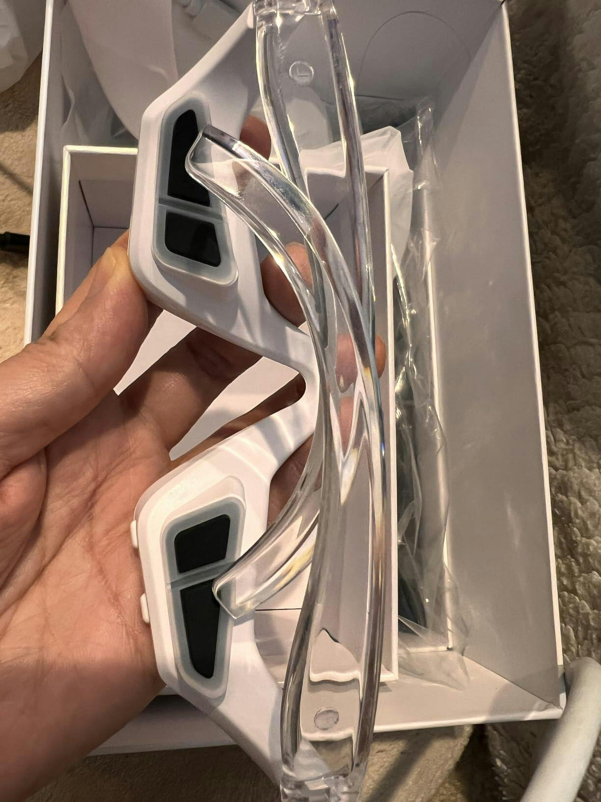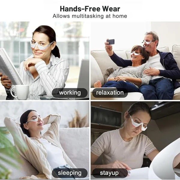 Shaped like a pair of glasses, the device does not cover your eyes, allowing you to seamlessly integrate your 10-minute treatment into your daily life—whether you're working, reading, or watching TV.