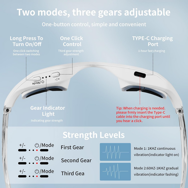 The device uses special low-frequency micro-currents to induce gentle, three-directional oscillation in the deep muscles surrounding the eyes. This exercise helps to relieve tension, stimulate blood flow, and provide comprehensive fatigue relief.